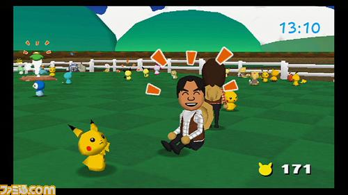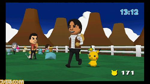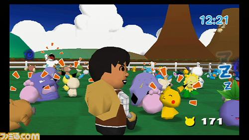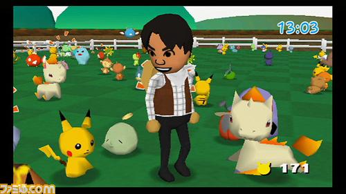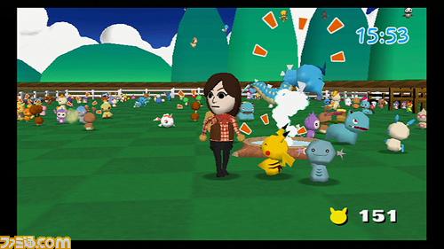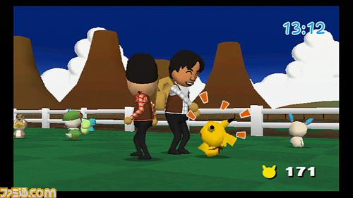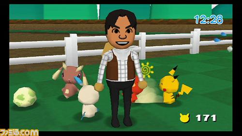 Pokemon Bokujou (Which translates as Pokemon Ranch) lets you transfer those Pokemon you have on your Diamond and Pearl games onto your Wii and lets you raise them in a Farm like environment. From the screenshots, it looks like your Miis get in with the action. While the Pokemon don't look too impressive, you have to remember this is a Wiiware title.